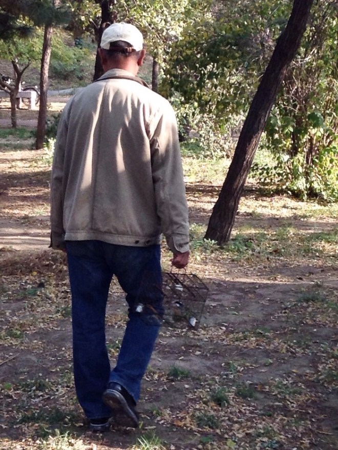 Previous ImageNext Image IMG_3398 Bird Walk He was taking his bird for a walk this early morning. Qingnian Park, Shenyang, China