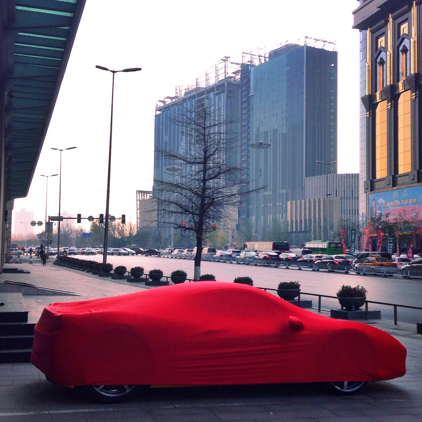 Previous ImageNext Image Delivery Delivery Special Delivery? This red -draped gem was outside the dealership.
