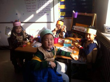 One teacher asked me to bring back large paper bags from the US in October. My brother got some for me in a Chinese restaurant, of all places. These awesome 1st graders made Thanksgiving vests. I used this picture to send my brother a birthday postcard through the Inkcards app. Too cute! He even took it to work to show it off.