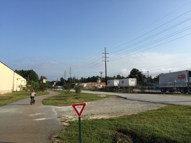 As I imagine most urban trails, the Swamp Rabbit includes passes through more populated areas. This small trucking company and other businesses were quiet on the day I passed.
